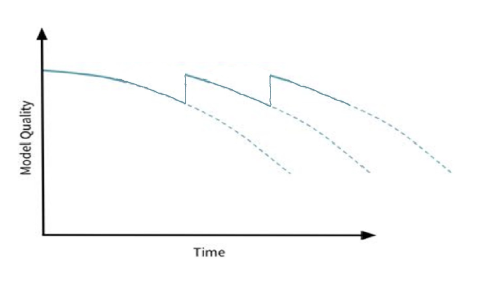 This automated system is the typical go-to in industry today. It allows data teams to focus on being as impactful to the business as possible by developing new models that address different business issues rather than spending time maintaining and re-tuning existing production models.